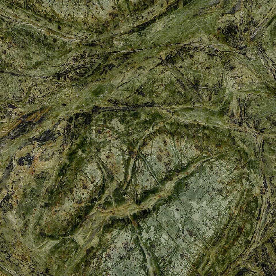 Green Forest marble, also known as Bidasar Green, is quarried in Rajasthan, India. It is distinguished by its deep green background crossed by striking, irregular white and brown veining reminiscent of tree branches. This highly graphic and organic pattern gives it a strong decorative identity, ideal for statement furniture pieces such as tabletops, sculptural volumes, or paneling. Its natural texture and tonal variety bring a sense of vitality and connection to nature. Green Forest marble can be polished for a glossy finish or honed to preserve a raw, matte character.