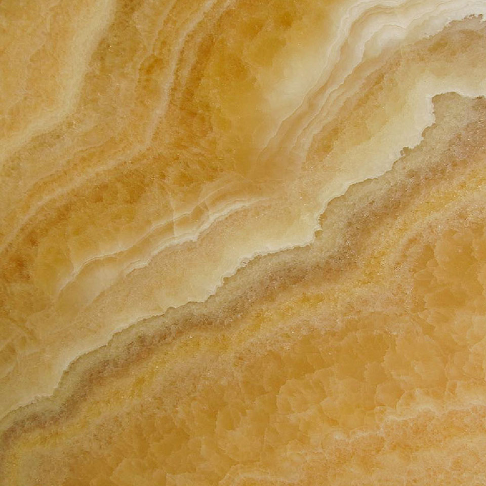 Honey Onyx is a translucent natural stone characterized by warm amber tones and layered veining in shades of cream, gold, and white. Quarried in several regions including Iran and Pakistan, it is prized for its glowing appearance and unique depth, especially when backlit. Honey Onyx is often used in furniture design for luminous panels, lighting features, and decorative surfaces that require a striking yet elegant presence. Its delicate structure makes it suitable for low-impact applications. Available in polished or resin-treated finishes, it highlights the natural transparency and fluidity of the stone.
