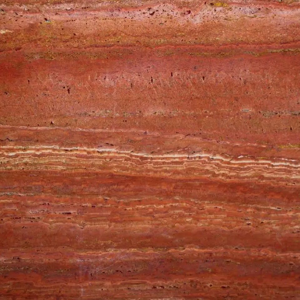 Travertine Red is a natural limestone with a warm, reddish tone and a characteristic stratified structure, typically quarried in Iran and parts of Central Asia. Its chromatic palette ranges from brick to terracotta, with occasional beige or ivory veins running parallel to the bedding. The stone’s open pores and earthy appearance give it a tactile and organic identity, making it ideal for sculptural or monolithic furniture pieces that emphasize material authenticity. Used in tabletops, bases, and architectural complements, Travertine Red is available in honed, brushed, or tumbled finishes, each enhancing its natural texture and chromatic richness.